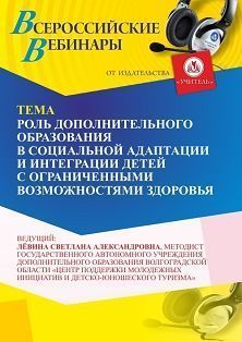 Вебинар «Роль дополнительного образования в социальной адаптации и интеграции детей с ограниченными возможностями здоровья»