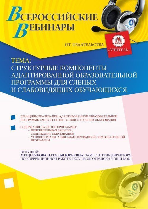 Приглашаем воспитателей ДОО, учителей, педагогов-психологов, родителей принять участие в offline-вебинаре «Структурные компоненты адаптированной образовательной программы для слепых и слабовидящих обучающихся».
