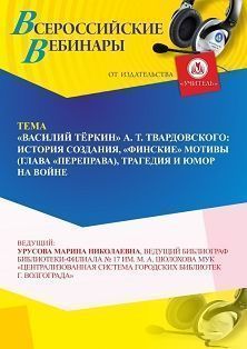 Вебинар «“Василий Тёркин” А. Т. Твардовского: история создания, “финские” мотивы (глава “Переправа”), трагедия и юмор на войне»