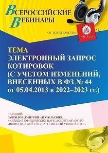 Вебинар «Электронный запрос котировок (с учетом изменений, внесенных в ФЗ № 44 от 05.04.2013 в 2022 - 2023 г. г.)»