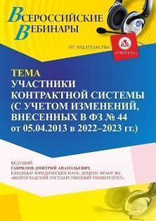 Вебинар «Участники контрактной системы (с учетом изменений, внесенных в ФЗ № 44 от 05.04.2013 в 2022 - 2023 г. г.)»