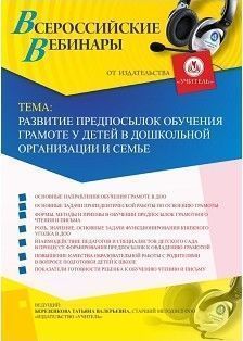 Приглашаем воспитателей ДО принять участие в offline-вебинаре «Развитие предпосылок обучения грамоте у детей в дошкольной организации и семье».