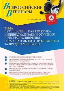 Вебинар «Путешествие как практика индивидуализации обучения и ресурс расширения образовательного пространства за пределами школы»