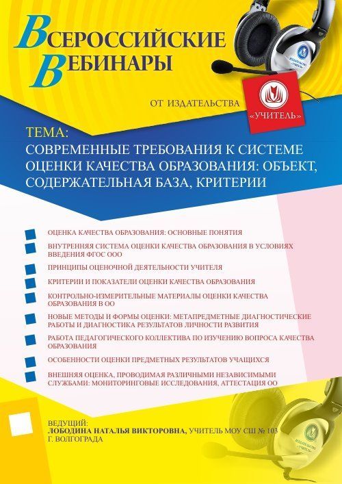 Приглашаем методистов, учителей начальных классов, учителей-предметников, заместителей руководителя принять участие в offline-вебинаре «Современные требования к системе оценки качества образования: объект, содержательная база, критерии».