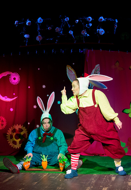 Два веселых зайчишки-шалунишки создали свой маленький, но очень уютный «пушистый, хвостатый и длинноухий» театр. Теперь они приезжают к девчонкам и мальчишкам и дают самые веселые представления в городе. И, конечно, показывают ребятам свои любимые сказки. Обязательно про «Красную шапочку» – девочку, которая не испугалась идти одна в лес и там повстречала хитрого и опасного Серого Волка. И про «Мальчика-с-пальчика», который, несмотря на свой рост, готов к большим приключениям и в смелости и смекалке не уступит даже великану.В балаганчике у зайцев ребят ждет интересное интерактивное представление, которое не только познакомит их с настоящим театром и самыми популярными сказками всех времен и народов, но и научит маленьких зрителей доброте, смелости, взаимовыручке и