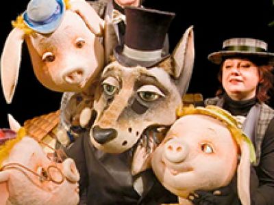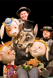 С. Михалков, В. Швембергер Поросята Ниф-Ниф, Нуф-Нуф и Наф-Наф строят домики, а Черный волк хочет обучить их правилам строительства… Героев ждет множество перипетий, раскрывающих их характеры, желания и страхи. Приключения поросят обязательно заставят маленьких зрителей думать и сопереживать, полностью захватив внимание юных гостей театра. В это время в театр прибывают знаменитые охотники-звероловы, чтобы поймать Черного волка. Наконец хитрый Волк пойман, поросята сделали для себя правильные выводы, а охотники подтвердили свой уважаемый статус. Режиссер – Валерий ВольховскийХудожник – Александр ЕчеинПродолжительность спектакля: 1 час 25 мин с антрактом. *Спектакль рекомендован