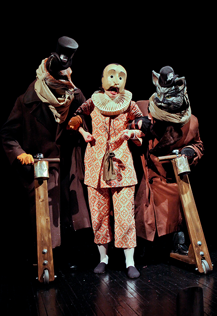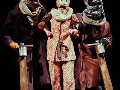 Сказка по произведению К. КоллодиИстория итальянского деревянного человечка значительно отличается от известных всем нам с детства приключений Буратино из сказки «Золотой ключик» А. Толстого. Главное отличие этих двух произведений в том, что Буратино остается деревянным человечком, а Пиноккио превращается в живого мальчика, пройдя через многие испытания и злоключения. Это и есть главная идея сказки К. Коллоди – в ней показано, насколько труден путь к тому, чтобы стать настоящим человеком, обрести живую душу, сколько препятствий и соблазнов надо преодолеть на этом пути. Спектакль «Пиноккио» – это совместная работа Екатеринбургского театра кукол и «Цахес-театра» из Флоренции (Италия). Создатели спектакля стремились максимально приблизить видеоряд и стиль к времени создания «Пиноккио» автором, поставив спектакль в лучших традициях площадного театра. В результате совместной работы двух замечательных театральных коллективов получился красивый, трогательный, немного страшный и не по-детски серьезный спектакль. Автор инсценировки и режиссер: Луана ГраменьяХудожник: Франческо ДживонеКомпозитор: Стефано Дель ПонтеПродолжительность: 60