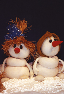 Спектакль по мотивам румынской народной сказкиОднажды зимним вечером дети слепили двух славных снеговичков – Девочку, которой подарили большой синий бант, и Мальчика – в веселом вязаном колпачке с помпоном. Ночью снежные Мальчик и Девочка ожили и решили отправиться в дальнюю дорогу на поиски загадочного и прекрасного Солнышка. Лирическая нежная и немного грустная история не оставит равнодушными ни маленьких, ни больших зрителей. Продолжительность: 45 минутРекомендуемый возраст: