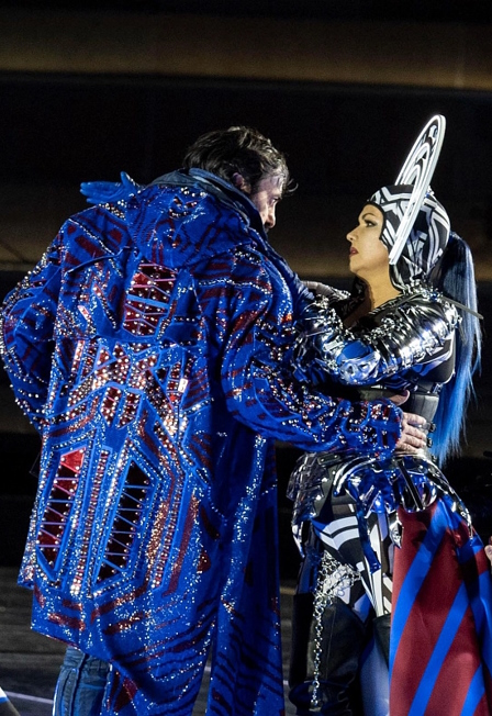 Вступительное слово — Алексей ПаринСветовые эффекты, самая современная сценическая техника, «пасхалки» для поклонников «далёких-далёких галактик» вкупе с шармом классической оперы, — великолепная футуристическая постановка Стефано Поды стала хитом фестиваля на Арене ди Верона (2025).В своей интерпретации Пода убирает исторический контекст. Мощное режиссёрское высказывание в самом визуале спектакля: космические костюмы, пластическая драматургия со сложными балетным и фехтовальными сценами. Две металлические конструкции, олицетворяющие враждующие народы, наполняют постановку вневременным символизмом.В партии Абигайль, дочери Набукко, одной из наиболее требовательных партий для сопрано в вердиевском репертуаре, — Анна Нетребко. В роли вавилонского царя — знаменитый монгольский баритон Амартувшин Энхбатын.Опера «Набукко», премьера которой состоялась в Милане в 1842 году, была первым значительным успехом молодого тогда Джузеппе Верди. Опера отличается мощными хоровыми партиями и ярким драматическим сюжетом.Сюжет рассказывает о падении Иерусалима и пленении евреев вавилонским царём Навуходоносором. Город осаждён вавилонскими войсками, дочь царя Фенена — заложница израильтян. Старшая дочь Навуходоносора Абигайль решает свергнуть царя и занять его трон. После завоевания города Навуходоносор впадает в безумие из-за своей гордыни, но, увидев, что младшей дочери грозит опасность, раскаивается и умоляет бога израильтян возвратить ему разум.Пода переносит действие оперы из конкретной эпохи в вечное настоящее, создавая универсальную притчу. Для него враждующие стороны не иудеи и вавилоняне, а любые народы дня сегодняшнего, вчерашнего и, возможно, завтрашнего, для которых есть надежда на объединение и мир в конце.Пинхас Штейнберг дирижирует хором и оркестром Арены с энтузиазмом и огнём, тонко понимая, когда следует раскрыть всю мощь оркестра, а когда позволить голосам взлететь в итальянской ночи.Действующие лица и исполнители:Абигайль — Анна НетребкоНабукко — Амартувшин ЭнхбатЗахария — Кристиан ван ХорнФенена — Франческа Ди СауроИзмаил — Галеано СаласПостановка, декорации, костюмы, свет и хореография — Стефано ПодаДирижёр — Пинхас ШтейнбергОпера на итальянском языке с русскими