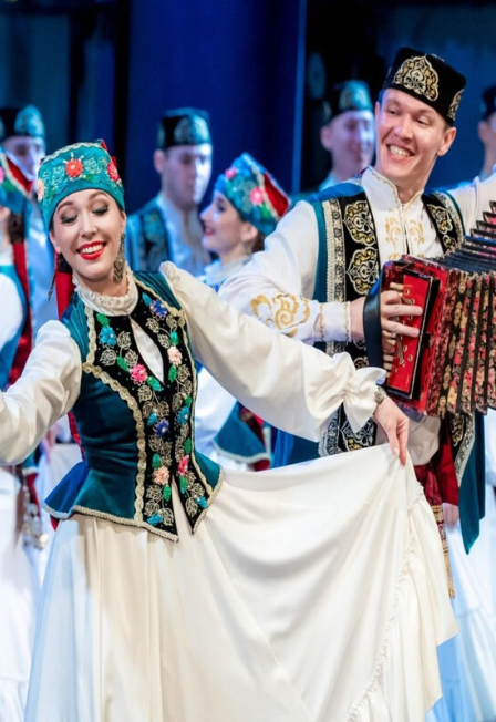 Государственный ордена Дружбы народов АНСАМБЛЬ ПЕСНИ И ТАНЦА Республики Татарстан – профессиональный ансамбль, где исконные национальные традиции татарского народа, его музыкальная, танцевальная культура, прикладное искусство представлены на самом высоком уровне.Ансамбль ведет широкую гастрольную деятельность по России, странам СНГ и дальнему зарубежью. Свое национальное искусство коллектив представлял в Китае, Монголии, Тунисе, Турции, Италии, Мальте, Чехии, Словакии, Англии, Германии, странах Западной Африки, Японии, Йемене, Финляндии, Югославии, Франции.В репертуаре коллектива музыка и танцы более 100 народностей. Работая с музыкальным материалом разных континентов, ансамбль обогащает собственную палитру. В своих номерах музыканты и танцоры ансамбля рассказывают зрителям историю цивилизаций, культур больших и малых народов. Зрителей неизменно покоряет то трепетное отношение коллектива к образцам народного творчества, к отбору народных песен и танцев, самой манере их исполнения.Художественный руководитель коллектива – заслуженный артист Российской Федерации, народный артист Республики Татарстан Айрат ХАМЕТОВ.В программе:I отделение - музыкально-хореографический спектакль «Туй» («Свадьба»). Он основан на фольклоре и этнографии казанских и сибирских татар начала ХХ века.Спектакль уже успешно прошел в Казани, Москве, Владимире, Чебоксарах, Перми, Свердловске, Тюмени и других городах России.II отделение - «Золотой фонд». Включает настоящие шедевры татарской культуры, которые вошли в золотую коллекцию ансамбля. Эти номера имеют богатую историю и глубокие фольклорные корни. Оркестр и хор ансамбля исполнят душевные народные татарские мелодии и песни, такие как «Ай, былбылым», «Сибелэ чэчэк», «Арча» и другие.Музыкальную часть дополнят яркие и эмоциональные татарские танцы: «Девичник», «Крылатая молодость», «Гармонь-гармонь» и другие.ПРОДОЛЖИТЕЛЬНОСТЬ: 2 часа 00 минут, включая антрактВозрастное ограничение: