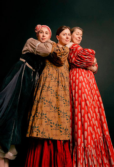 Таисия Краснопевцева, вокал, колёсная лираВарвара Котова, вокал, колёсная лира, гусли, перкуссияПолина Терентьева, вокал, колёсная лираПрограмма «Женские песни» — это не просто концерт, а живое действо, почти спектакль. Песни текут одна за другой, открывая древний, очень простой и при этом глубокий сюжет — о женской доле, от рождения девочки и до рождения ею собственного ребёнка. Микрокосмос девичьей души в её перерождениях.В концерте звучат народные песни расширенного жанра. Исполняются по-разному — инструментами и a cappella. Каждая отвечает за специфическую ипостась женской судьбы.Программа Духовный стих «Адаме, Адаме»«Колыбельная»Народная песня Курской области «На дворе дождь»Аранжировка Краснопевцевой, Котовой и ТерентьевойНародная песня Курской области «Гульбушка»«Страдания» (частушки «под язык»)Лирическая песня Архангельской области «Василий и Софья»Духовные стихи:«Как во садике»«У купца жила девица»«Смут» Свадебная песня Курской области «Ой, Марьюшка Богу молится»Свадебная песня Белгородской области «Ю ладо»Плач невесты Псковской областиЛирическая песня Курской области «Рано ты калинушка»Лирическая песня Смоленской области «Горе, моё горе»Народная песня Курской области «Голова моя болит»Аранжировка Краснопевцевой, Котовой и ТерентьевойПолевая песня Брянской области «Слава Богу, что мой муж хороший»Духовный стих «Мать Пречистая по полю шла»Аранжировка Краснопевцевой, Котовой и ТерентьевойДуховный стих «Спи, Иисусе»Аранжировка В. ТепловаНародная песня Смоленской области «Как по морю»Аранжировка Краснопевцевой, Котовой и ТерентьевойВ программе возможны измененияПродолжительность: 90 минут без