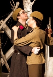 Режиссер-постановщик - Народный артист России Марк РозовскийСценография и костюмы - Заслуженный деятель искусств России Станислав МорозовМузыкальный руководитель спектакля - Татьяна СмольскаяПомощник режиссера - Оксана МельниковаЗвук - Ольга ЕфимоваСвет - Евгений БратяковПовесть была явно автобиографична, но не буквально, не в прямую рассказывала о том, что случилось с самим Булатом в годы войны, - она лишь намекала на что-то происходившее в действительности, но ее художественная суть и задача была другая – дать сфантазированное обобщение, вывести из автобиографизма судьбу поколения «мальчиков», пошедших на кровавую бойню со школьной скамьи.Да, он нелеп и тщедушен, этот школяр в солдатской форме. Подносчик мин, ни разу не выстреливший из своего автомата. Но он волей-неволей среди месива убийств, рядовой бумажный солдатик, испытавший и познавший на передовой и чувство первой любви, и что такое мужская дружба. Его такое выживание «там, где стреляют» и есть мужество и мужание юноши, который способен преодолеть такой понятный страх быть убитым и сделаться солдатом, «как все».Очень узнаваемый герой, с очень узнаваемыми переживаниями. Стать воином для него непросто, но, как говорится, жизнь заставляет. Да и смерть своей постоянной угрозой превращает мальчишку в настоящего бойца. Ей же надо противостоять!..Действующие лица и исполнители:Школяр - Никита Заболотный, Максим ЯкимовЛейтенант - Александр ЧернявскийСтаршина - Денис СарайкинСашка Золотарев - Владимир ДавиденкоКоля Гринченко - Заслуженный артист России Денис ЮченковКомполка - Александр БычковШонгин - Иван Власов Заслуженный артист России Нина - Екатерина Васильева, Анна ТитоваЖенька -Евгения ЛьвоваХозяйка - Заслуженная артистка России Ирина Морозова, Заслуженная артистка РоссииМаргарита РассказоваМанька - Алиса ТарасенкоДевочки: Екатерина Васильева, Татьяна Дьяченко, Анастасия Добрынина, Евгения Львова, Алиса Тарасенко, Анна ТитоваМузыканты:Елена Гончарова Заслуженная артистка России - клавишиТатьяна Ревзина - клавишиТатьяна Смольская – клавишиАлександр Второв – ударные инструментыРуслан Капитонов – ударные инструментыКлавдия Тарабрина – аккордеонДиана Галимова – флейтаАртем Мелешкин – контрабасЕлизавета Федорова - скрипкаПродолжительность: 2 часа 20 минут с