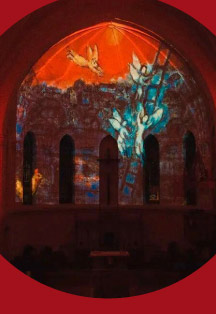 Сегодня в пространстве старинного собора парят ангелы, влюблённые и музыканты - излюбленные персонажи картин удивительного Марка Шагала - отражение многообразия жизни, фантазии, творчества и огромной любви, разлитой над миром.