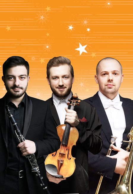 Выступают солисты Санкт-Петербургского Дома музыки – блистательные молодые звёзды классической музыки. В программе концерта – три шедевра инструментального искусства. Редко исполняемый концерт голландского композитора Готтфрида Манна для кларнета с оркестром относится к периоду позднего романтизма. В нем сочетается драматизм, виртуозность и мелодизм. Партия кларнета насыщена сложными пассажами, скачками и требует от исполнителя безупречной техники. Концерт «Краски» для тромбона Берта Аппермонта – яркое и современное сочинение, украсившее тромбоновый репертуар. Первый скрипичный концерт Прокофьева является одним из самых блистательных сочинений композитора. В нем господствуют лирические настроения, скерцозность и гротеск. Прокофьев. Концерт №1 для скрипки с оркестромМанн. Концерт для кларнета с оркестромАппермонт. «Краски» для тромбона и духового оркестраПавел Милюков (скрипка) – Заслуженный артист РФ. Лауреат III премии Международного конкурса им. П. И. Чайковского (Москва, 2015). Победитель Международного конкурса «Robert Canetti competition» (Венгрия, 2005). Обладатель Гран-при Международного конкурсе скрипачей (Астана, 2008). Победитель Международного конкурса им. Арама Хачатуряна (Армения, 2012). Алексей Лобиков (тромбон) – Победитель Международного конкурса им. Чайковского (2019). Солист оркестра Мариинского театра. Победитель Международного конкурса им. Мравинского (Санкт-Петербург, 2006). Победитель Международного конкурса им. Н. А. Римского-Корсакова (Санкт-Петербург, 2008). Победитель музыкального конкурса тромбонистов «Lion’s Club» (Финляндия, 2009). Лауреат III премии Международного конкурса «Пражская весна» (2011). Вазген Юсупов (кларнет) – лауреат II премии Всероссийского музыкального конкурса (2024). Победитель Всероссийского конкурса молодых музыкантов «Созвездие» (Сириус, 2020). Победитель Международного конкурса «Вебер-Кларнет» (2021) и Международного конкурса Московской консерватории (2022). Симфонический оркестр Государственной академической капеллы Санкт-ПетербургаДирижёр – Игорь МанашеровПродолжительность концерта 2 часа, антракт – 20