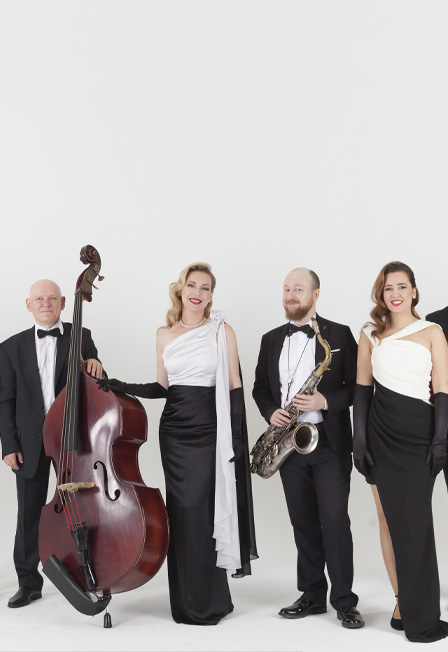 Джаз-бэнд Real Jam приглашает вас совершить уникальное музыкальное путешествие в прошлое. В программе концерта прозвучат золотые мелодии джаза из репертуара Луи Армстронга, Эллы Фицджеральд, Фрэнка Синатры, Мэрилин Монро и др. Трехголосный вокал, контрабас, ударные, фортепиано, гитара и саксофон исполнят все композиции в своих авторских аранжировках. Музыканты перенесут слушателей концерта в атмосферу черно-белого кино, старого Голливуда и виниловых пластинок. Вокалистки бэнда также расскажут самые интересные истории создания золотых хитов джаза и пригласят зрителей поучаствовать в некоторых номерах программы. Не пропустите возможность совершить это удивительное путешествие! Real Jam — один из самых востребованных вокально-инструментальных коллективов Москвы. Уже 15 лет музыканты возрождают традиции старого джаза и переносят слушателя во времена чёрно-белого кино, биг-бэндов и виниловых пластинок. Каждый концерт — это путешествие во времени под джазовый аккомпанемент: начиная с новоорлеанского и чикагского джаза первой четверти 20-го века, продолжая традициями эпохи свинга 30-х годов и самыми знаковыми джазовыми мелодиями 40-х и 50-х годов. Коллектив был создан в 2009 году Татианой Фатеевой, которая по сей день является лидером бэнда, директором, аранжировщиком и вокалисткой. Музыканты Real Jam – резиденты самых авторитетных джазовых площадок Москвы (Клуб Игоря Бутмана, джаз-клуб «Союз Композиторов», Джаз-Кафе «Эссе», Jam Club и многие другие), а также частые гости известных музыкальных клубов страны, крупнейших залов и Филармоний России. СоставВокал: Наталья Толмачева, Анастасия Стрекачева,Маргарита БураковаРояль: Алексей РябухинГитара/вокал: Вадим ХарченкоСаксофон: Юрий СевастьяновКонтрабас: Павел ПротасовУдарные: Евгений КамкинРуководитель коллектива: Татиана