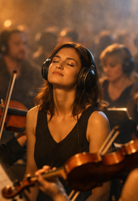 При этом концерт остаётся живым: в зале работают акустические системы, и зритель может в любой момент снять наушники, чтобы ощутить естественное звучание и физическую энергию оркестра на расстоянии нескольких метров.