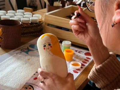 На мастер-классе по росписи матрёшки-шкатулки (14 см.