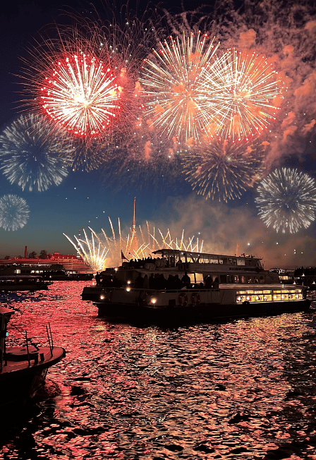В этом круизе вы окажетесь в точке максимального обзора и перед вашими глазами вспыхнут в небе миллионы разноцветных огней! Вы погрузитесь в атмосферу яркого праздника и трогающей душу памяти и полюбуетесь знаменитыми достопримечательностями и видами города с воды. Приятная музыка, запоминающийся салют, прогулка по Неве, один из самых красивых городов мира и теплая атмосфера душевного праздника. Этот вечер навсегда останется в вашем сердце. Посадка начинается в 21:15, отправление в
