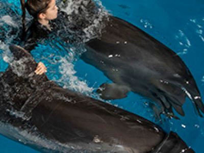 Это специально организованная программа, когда вы не просто находитесь в воде рядом с дельфинами, а плаваете с ними. Вы опуститесь в воду, а дельфины подставят вам свой плавничок и провезут по кругу бассейна. Чувство счастья от знакомства и единения с морским миром будет одним из самых ярких в вашей жизни. Температура воды в бассейне: +25 градуса в любое время