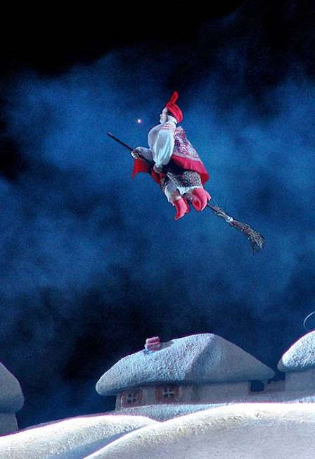 Авторы пьесы – Б. Голдовский, Е. ОбразцоваРежиссёр-постановщик – заслуженная артистка РФ Е. Образцова.Художник-постановщик – народный художник РФ С. АлимовКомпозитор – А. АлександровАвтор текстов песен – заслуженный деятель искусств РФ Б. КиркинБалетмейстер – Н. ЛитварьРежиссёр – А. ВещиковСпектакль поставлен по одноимённой повести Н.В. Гоголя из цикла «Вечера на хуторе близ Диканьки».Замечательная сценография, выразительные образы кукольных персонажей, разнообразные сценические эффекты – и перед зрителями возникает зимняя Диканька, наступает магическая ночь перед Рождеством…В эту волшебную пору кого только не увидишь среди звёзд в бездонном ночном небе! Свору чертей во главе со Старым Чёртом, пикирующих на Диканьку. Щеголиху ведьму на помеле. Влюблённого кузнеца, летящего верхом на чертёнке в Санкт-Петербург!Как ни колобродят черти, все равно кузнец Вакула добьется своего и завоюет любовь красавицы Оксаны!Продолжительность: 1 час 35 минут (с антрактом)Каждому зрителю, независимо от возраста, нужен
