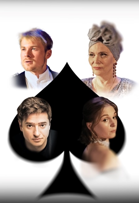 Мистическая драма по повести А. Пушкина.Классический сюжет, традиционные костюмы, но…Режиссер приоткрывает завесу над тайной истории происхождения трех карт. Графиня есть, но кем был граф? Не секрет, что идея и сюжет произведения были подсказаны А. Пушкину князем Голицыным, который однажды отыгрался благодаря совету своей бабушки Н. Голицыной, поставив на три определенные карты. А Голицыной в свое время подсказал эти карты сам Сен-Жермен.В спектакле мастерски переплелись черты романтизма, мистики и реализма. Герман решает разбогатеть любой ценой, но готов ли он уплатить эту цену? Режиссер ставит вопрос о цене выбора: на одной чаше весов выигрыш, на другой - любовь. Что выбирают герои? И что в конечном счете выберет сам