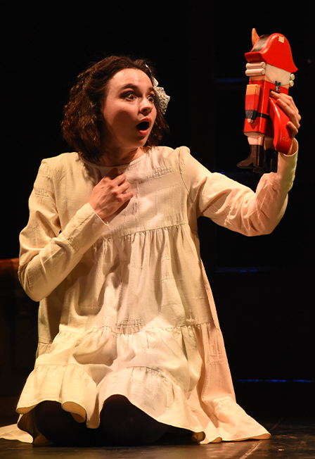 ЩелкунчикПутешествие в мир сказки Э.-Т.-А. Гофмана и музыки П. И. ЧайковскогоСпектакль в постановке Максима Студеновского и Владимира Карповапо сказке Эрнста Теодора Амадея ГофманаПостановочная группаРежиссёры – Владимир Карпов, Максим СтуденовскийХудожник-постановщик – Татьяна АртамоноваХудожник по свету – Максим АхрамеевМузыкальное оформление – Максим СтуденовскийВидео – Александр Малышев, Анастасия ПосоховаХореограф – Екатерина СафроноваДействующие лица и исполнителиМари – Мария Дидик, Дарья СоловьёваФранц, её брат – Фома Бызгу, Иван ГригорьевПапа – Андрей Гаврюшкин, Сергей ИнтяковМама – Полина Воробьёва, Мария ПоликарповаДроссельмейер, крестный Франца и Мари, часовщик – Максим СтуденовскийЩелкунчик – Андрей Дидик, Михаил Касапов, Дмитрий МиковМышиный король – Олег Абалян, Владимир Карпов, Дмитрий ЖитковМышильда – Кристина Бойцова, Арина ЛыковаПервая Мышь – Кристина Бойцова, Андрей Дидик, Никита КапраловВторая Мышь – Владимир Карпов, Михаил Касапов, Арина ЛыковаПианистка – Мария Студеновская«Щелкунчик» Гофмана – культовая сказка для петербургского зрителя. Традиционно в декабре театралы Петербурга, Петрограда, Ленинграда, Петербурга водили и водят своих детей и внуков смотреть рождественскую историю о большой любви, которая побеждает страшное проклятие. Сценическая история «Щелкунчика» насчитывает десятки постановок на балетной, кукольной и драматической сценах.В трактовке Максима Студеновского и Владимира Карпова в «Щелкунчике» на первый план выходит мастер Дроссельмейер – крестный отец Мари и Франца, искусный изготовитель движущихся кукол и родной дядюшка заколдованного юноши, обращенного в уродливую игрушку. Именно он – рассказчик рождественской сказки, и именно он соединяет судьбы Мари Штальбаум и своего племянника, подарив девочке нелепую куклу и рассказав ей печальную сказку о волшебном орехе Кракатук и злой королеве Мышильде.Дроссельмейер рассказывает свою сказку у рояля, под музыку, выступая то тапером разворачивающейся на сцене истории, то ее единственным автором и ведущим, находясь одновременно в двух мирах. Так же и его любимица Мари переходит из одного мира в другой, сперва влекомая магией слова и музыки крестного, а потом обретающая собственную силу, позволяющую ей оживить и увести за собой кукол, солдатиков и лошадок и разглядеть истинную суть домовых крыс – воплощения сказочного зла – и деревянного человечка – воплощения сказочного благородства и отваги.Кажущаяся простой и бесхитростной, сказка о Щелкунчике обретает суть и смысл притчи – особенно когда рассказывается детям. В ней сплетаются мир реальный и мир фантазии и мечты, мир холодный и суровый – и мир поэтический и гармонический.В спектакле Максима Студеновского и Владимира Карпова мир ребенка делится не на черное и белое, а на прозу и поэзию, глухоту и музыку, скуку и фантазию. Любое пространство может стать сказочным, любой мир может стать волшебным, любое существо может обрести новые черты, если маленький человек откроет глаза, душу и сердце, чтобы увидеть и почувствовать больше, чем кажется.Игровая стихия спектакля вовлекает маленьких зрителей в мир дома Штальбаумов и сказки Дроссельмейера. С ними играют, как с равными, Мари и Франц, они сидят на подушках прямо на полу детской Штальбаумов, они вместе с м