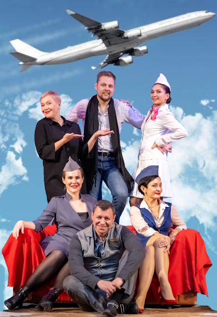 Лирическая комедия по пьесе Марка КамолеттиМолодой и востребованный в самых разных частях света архитектор Бернар часто летает самолётами различных международных авиакомпаний. Бернар хорош собой, чертовски обаятелен и имеет явно выраженную слабость к женскому полу. Будучи отъявленным ловеласом, он с лёгкостью крутит романы сразу с несколькими дамами. И до поры до времени ему это отлично удаётся, потому что его возлюбленные работают стюардессами и живут, что называется, «по расписанию». Бернар прекрасно справляется с ролью пылкого влюблённого, и девушки некоторое время даже не подозревают, что у каждой из них есть соперница, да ещё и не одна. Но однажды отлаженная система даёт сбой, и жизнь Бернара превращается в череду комических ситуаций, из которых он не может выбраться даже с помощью своего преданного друга Роберта. Два изобретательных обманщика не в силах противостоять Марте, Мишель, Мери и Берте.Зрители же с искренним восторгом наблюдают за любовными недоразумениями героев по-настоящему смешной комедии положений, сочинённой драматургом лишь с одной целью – заставить людей смеяться до слез.Продолжительность: 1 час 40 минут, без