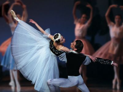 А. Адан«ЖИЗЕЛЬ»Балет в двух действиях Либретто Т. Готье и Ж. Сен-ЖоржаХореография Ж. Перро, Ж. Коралли, М. Петипа и В. ГордееваСценическая редакция и постановка народного артиста СССР Вячеслава ГордееваБалет «Жизель» – один из самых известных классических балетов – вершина жанра балетного романтизма, эталон поэтической и танцевальной одухотворенности. Этот шедевр украшает афиши многих театров мира, а самые прославленные мастера балетной сцены считают за счастье иметь в своем репертуаре ведущие партии из этого знаменитого произведения. Трогательная, тонкая история о любви, о настоящих искренних чувствах, которые побеждают все преграды, покоряет сердца зрителей уже второе столетие. В основе сюжета лежит старинная немецкая легенда о «виллисах» – невестах, преданных своими возлюбленными и умерших от горя не дождавшись свадьбы. В полночь, рассказывает предание, виллисы выходят из своих могил и танцуют. Горе путнику, который встретится им – виллисы вовлекают его в свой хоровод и кружат в танцах, пока он не упадет замертво. Деревенская девушка Жизель доверчиво и искренне влюбляется в красивого юношу – Альберта, не подозревая, что ее возлюбленный богатый аристократ. Он отвечает ей взаимностью, но в его планы вовсе не ходит женитьба на простой девушке. Жизель погибает, будучи не в силах пережить обман своего возлюбленного – Альберта, скрывшего высокий титул и предстоящий брак с другой. Даже став одной из виллис – мстительных духов обманутых невест – Жизель силой своей всепрощающей любви спасает Альберта от гибели.Премьера балета «Жизель» в постановке Ж. Коралли Ж. Перро по либретто Т. Готье состоялась на сцене парижской Grand Opera в июне 1841 года, а в 1843 году спектакль был впервые показан в Большом театре в Москве. В театре «Русский балет» балет «Жизель» был поставлен в 1991 году в редакции народного артиста СССР В. Гордеева, который будучи премьером Большого театра, считался одним из самых блистательных исполнителей партии Альберта. Постановка Гордеева впечатляет своей утонченной интонацией и гармонией, смотрится на едином дыхании. Вот уже более тридцати лет он украшает репертуар театра, погружая зрителей в волшебный мир музыкального театра. Танец становится языком души, а слаженность кордебалета, которым так славится труппа Гордеева, превращает сценическое действие в фантастическую иллюзию.