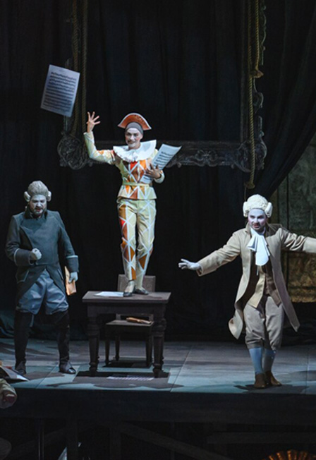 Дж. ВердиОпераТрагифарс в 3 действияхЛибретто Антонио Сомма на сюжет Эжена СкрибаОпера написана в 1858 году, в данной сценической версии впервые представлена в Перми в 2023 годуИсполняется на итальянском языке с русскими титрамиНаписанный в 1858 году, «Бал-маскарад» завершает десятилетие, в которое были созданы «Риголетто», «Трубадур» и «Травиата» — оперы, принесшие Джузеппе Верди не просто признание, но мировую славу. Знаковое название итальянского романтического репертуара, «Бал-маскарад» после долгого перерыва возвращается на пермскую сцену в постановке Владиславса Наставшевса. Его дебютный спектакль в Пермской опере, выпущенный в 2022 году «Евгений Онегин», стал обладателем Национальной театральной премии «Золотая Маска — 2023» за лучшую работу режиссера и был признан публикой и критикой одной из ключевых постановок российской музыкальной сцены последних лет.Премьерой «Бала-маскарада» Пермский театр оперы и балета завершает цикл спектаклей, поставленных в сезоне 2022/2023 по произведениям композиторов-реформаторов, навсегда изменивших облик оперного жанра — в ноябре прошлого года его открыл «Замок герцога Синяя Борода» Белы Бартока в постановке Евгении Сафоновой, а в апреле продолжил «Летучий голландец» Рихарда Вагнера в режиссуре Константина Богомолова.Владиславс Наставшевс, режиссер-постановщик:— Сочиняя одну из лучших своих опер, Верди балансировал на грани — между трагическим и комическим, между иронией и меланхолией. На одной из репетиций я вспомнил о том, как перед смертью Чехов с улыбкой попросил бокал шампанского, выпил всё до дна, тихо лег на бок — и вскоре умолк навсегда. Герои «Бала-маскарада» любят, ревнуют и умирают с той легкостью и с той страстью к жизни, которая вообще свойственна итальянскому искусству и итальянской опере. Жанр нашего спектакля — трагифарс. В нем встречаются два мира — закулисья и сцены. Всегда ли можно провести границу между реальностью и вымыслом? И не является ли жизнь подлинным балом-маскарадом, где все носят маски — и всё оказывается не тем, чем кажется?Действие IУтро. Губернатор города Риккардо принимает посетителей. В хоре славословий приближенных тонут реплики заговорщиков Тома и Сэмюэля, которые планируют убить Риккардо. Паж Оскар приносит список приглашенных на бал. Среди них — и Амелия, в которую Риккардо тайно влюблен. Увы, Амелия замужем за Ренато — другом и секретарем Риккардо.Наедине с Риккардо Ренато сообщает, что раскрыл заговор против него. Он увещевает Риккардо поберечь свою жизнь, но тот отказывается арестовывать заговорщиков и даже узнавать их имена. Верховный судья приносит на подпись приказ об изгнании из города гадалки Ульрики. Оскар вступается за нее, и Риккардо решает инкогнито отправиться к гадалке, чтобы самому испытать силу ее пророческого дара. Он приглашает с собой всех своих приближенных.Ульрика колдует в своем жилище. Она предсказывает матросу Сильвано, что губернатор скоро его повысит и наградит. Переодетый Риккардо подбрасывает матросу кошелек и указ о повышении. Слуга Амелии просит Ульрику принять его госпожу наедине. Ульрика выпроваживает посетителей, но Риккардо прячется и подслушивает. Амелия признается, что влюблена, и просит помочь ей избавиться от преступной страсти. Колдунья велит Амелии собрать волшебную траву ночью, на пустыре, гд