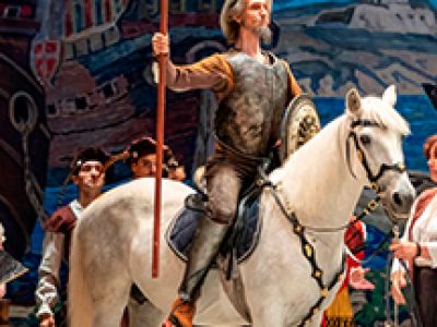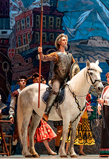 Кастаньеты, гитары, тамбурины, плащи, веера, клинки; болеро, сегидилья, фанданго; парад тореадоров на барселонской площади, сон в виде Большого классического па, финальный залп тридцати двух фуэте — и рыцарь с тазом на голове, который путешествует из картины в картину. Так «Дон Кихот» выглядит уже полтора века: хореограф Мариус Петипа сочинил это испанское каприччио с музыкой Людвига Минкуса в 1869 году.31 год спустя Александр Горский поставил нового «Дон Кихота», взяв сценарий Петипа и музыку Минкуса. Спектакль оформили Константин Коровин и Александр Головин: впервые в балете живописное движение цвета было неразрывно связано с движением танцовщиков. Для русского балета наступила новая эпоха, а постановка Горского стала прототипом почти всех балетных «Дон Кихотов» мира.Для премьеры в Урал Балете было решено максимально очистить балет Горского от советских наслоений и вернуть ему изначальный облик, используя эскизы Головина и Коровина. Это не реконструкция спектакля 1900 года, — но попытка воссоздать его образ во всех