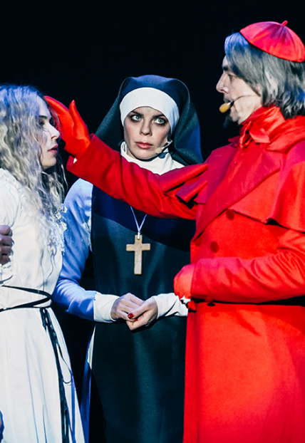 Звезды российских мюзиклов, популярные актеры театра и киноАвтор либретто, композитор, режиссер-постановщик – Александр РагулинХореограф – Иван МежевикинСценография – Лидия АрустамянХудожник по костюмам – Елена ЖелезняковаХудожник по свету – Анастасия ЯкубовичРок-мюзикл «Графиня де Ла Фер» – оригинальный приквел к любимому миллионами музыкальному фильму «Три мушкетера». Абсолютно новую версию истории жизни и любви Атоса, Портоса, Арамиса задолго до их судобоносного знакомства с Д’Артаньяном предлагает известный российский актер и композитор Александр Рагулин: «В детстве я обожал «Трех мушкетеров», особенно меня цепляла история Атоса – но там так много оставалось недосказанным: казнил ли граф де Ла Фер свою Миледи? Как ей удалось выжить? Были ли как-то связаны с этими событиями Арамис и Портос? Прошли годы, и я вновь вернулся к этой истории, которой Дюма в своем романе уделил лишь один абзац (разговор с лилльским палачом), а ведь это отдельный самодостаточный сюжет!»Блестящий актерский состав, яркая экспрессивная музыка и чисто рóковый драйв, помноженные на увлекательную историю о любви и коварстве, интригах и предательстве, помогают новому мюзиклу моментально завоевывать сердца зрителей. Свидетельство тому – десятки восторженных откликов тех, кому уже удалось побывать на премьерных показах «Графини де Ла Фер»:«Это бомба! Несмотря на то, что я была готова, как мне казалось, ко всему – такого я не ожидала. Видели ли Вы когда-нибудь Анну Австрийскую, играющую в футбол? А могли ли подозревать, что между роковой красоткой Миледи и милой и скромной Констанцией есть нечто общее? Я теперь – ДА! И это было ярко, смешно и гениально!»«Даже не знаю, как удалось уместить все интриги и хитросплетения сюжета в трехчасовый мюзикл, но это действительно увлекательно!»«Захватывающая история о высокой любви и грязном предательстве, о грешнице и святой, о короле и кардинале, о добре и зле, о Франции и каждом из нас. Причем первая часть спектакля более драматическая, а во второй настроение меняется в сторону юмора, танцев и рока. Рекомендую!».«Любовь и коварство, водоворот чувств и эмоций, накал страстей – и все это за 3 часа на одном дыхании!».«В финале весь зал стоял, подпевая мушкетерам. Не удивлюсь, если наше раскатистое пение было слышно далеко за пределами зала».«Браво! Теперь история Миледи, одержимой местью, не только обрела логическое начало, но и заиграло новыми красками».«Меня очень тронул такой вариант развития образа Миледи – от послушницы монастыря до чуть ли не самой влиятельной женщины Франции. Как говорится: «я верю!»«Минимума декораций вполне хватает, чтоб из монастыря перенестись в Лувр, из часовни в спальню королевы... Очень понравилась идея с католическими крестами, которые по ходу действия становятся карающими мечами». (отзывы зрителей)Автор идеи, музыки и либретто, а также режиссер-постановщик и продюсер мюзикла – известный актер театра и кино Александр Рагулин («КарамазоВЫ», «Граф Орлов», «Обыкновенное чудо», «Я – Эдмон Дантес», «Летучий корабль», «Три мушкетера»).В спектакле используется инструментальная фонограмма.*В программе возможны измененияПродолжительность:1 отделение – 1 час 10 минут, 2 отделение – 1 час 30