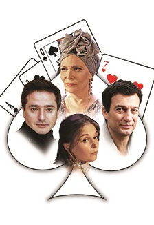 Режиссёр-постановщик — Олег ИльинКлассический сюжет, традиционные костюмы, но… Режиссёр приоткрывает завесу над тайной истории происхождения трёх карт. Графиня есть, но кем был граф? Не секрет, что идея и сюжет произведения были подсказаны Пушкину князем Голицыным, который однажды отыгрался благодаря совету своей бабушки Н. Голицыной, поставив на три определенные карты. А Голицыной в свое время подсказал эти карты сам Сен-Жермен. В спектакле мастерски переплелись черты романтизма, мистики и реализма. Герман решает разбогатеть любой ценой, но готов ли он уплатить эту цену? Режиссёр ставит вопрос о цене выбора: на одной чаше весов выигрыш, на другой - любовь. Что выбирают герои? И что в конечном счете выберет сам зритель? Актеры: А. Яковлева, И. Стебунов / М. Запорожский, А. Глаубэ / Н. Скоморохова, Д. Бозин / А. ЧернышовПродолжительность: 2 часа 20