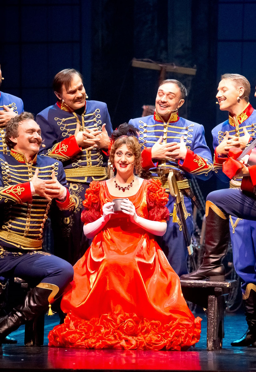 Т. ХренниковГероическая музыкальная комедияПродолжительность: 2 часа 40 минутПо мотивам пьесы А. Гладкова «Давным-давно». Героическая музыкальная комедия — жанр, в котором равноправно существуют драматическое действие и музыкальные номера, хореография и сценография, костюмы и свет. Жанр, в котором захватывающий водевильный сюжет изящно сочетается с лирическими сценами и героико-патриотическим звучанием. «Гусарская баллада» ставится в Омском музыкальном не в первый раз. Постановка 1995 года, посвященная Российской армии, в свое время имела успех и долгое время не сходила с подмостков. Версия 2025 года приурочена к Году защитника Отечества и во многом близка к первоисточнику. В основе сюжета спектакля — чудесная стихотворная пьеса Гладкова «Давным-давно», повествующая о чести и достоинстве. Она изысканна и грациозна, а ее герои благородны, доверчивы и слегка наивны, и в этом заключено ее невероятное обаяние. Это история двух любящих сердец: юной Шурочки Азаровой, которая, переодевшись в мундир гусарского корнета, отправляется в действующую армию, где наравне с мужчинами защищает отечество от врага, и ее простодушного жениха поручика Ржевского. Кроме того, в перипетиях сюжета немало исторических персонажей, к примеру фельдмаршал Кутузов. В спектакле звучит замечательная музыка Тихона Хренникова. При чем музыкальная палитра значительно переработана и расширена — использована не только всем известная музыка к фильму, но и другие произведения композитора, в том числе фрагменты из одноименного балета. Премьера состоялась 04. 10. 2025