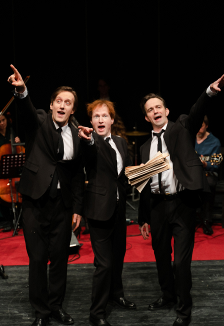 Автор сценария и режиссёр — Юрий ТитовХудожник — Мартын СтепановХудожники по свету — Владислав Фролов, Ольга ФилимоноваПедагог по вокалу — Анна ШавердьянПедагог по французскому языку — Александра КесельманАранжировщик — Алексей СоколовМузыкальный руководитель — Марина РакуЭто яркое действо на сцене театра «Мастерской Фоменко», в котором участвуют три артиста: Юрий Буторин, Николай Орловский и Юрий Титов.