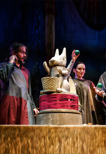 Создатели спектакля не иллюстрируют сказку напрямую, они включаются в игру, которую Пушкин ведёт с читателем, поддерживают его озорство и непринуждённость, сохраняя при этом уважение к тексту и автору.