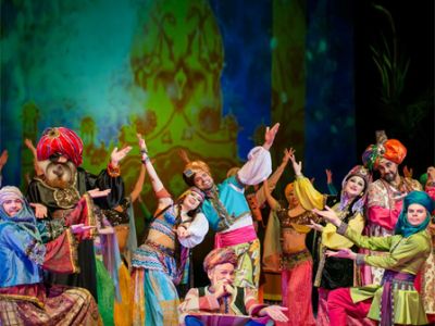 С. Никитин, В. БерковскийАли-Баба, или Сорок песен персидского базараС. Никитин, В. БерковскийМузыкальная сказка для всей семьиПо мотивам сценария В. СмеховаПродолжительность — 1 час 30 минутЖили-были два брата. Старший женился на дочери судьи Фатиме и стал считать золото горстями. Али-Баба женился по любви на бедной Зейнаб. Когда однажды у них совсем не стало ни денег, ни еды, Али-Баба в поисках спасения забрёл в горы и стал свидетелем волшебства. Разбойники во главе с Хасаном произнесли: «Сим-сим откройся», — и горы раздвинулись, пустили их и сошлись вновь. Опасливый Али-Баба не смог удержаться — повторил заклинание и очутился в сказочном месте среди гор золота и россыпи драгоценных камней. Набрал в мешки, сколько мог унести, и утром раздал всё беднякам на базаре. Тем временем о несметных богатствах Али-Бабы прознала Фатима. Касым просит брата раскрыть тайну…Алчный Касым находит в горах свою смерть. Раскаявшуюся Фатиму принимают как родную Али-Баба и Зейнаб. Вместе они побеждают Хасана и всех его разбойников. Дирижёр-постановщик и аранжировщик — заслуженный деятель искусств России Александр ГончаровАвтор сценария, режиссёр-постановщик и балетмейстер-постановщик — заслуженный деятель искусств Краснодарского края Александр МацкоХудожник-сценограф, автор видеоконтента — заслуженный работник культуры Краснодарского края Татьяна БарановаХудожник по костюмам — Андрей