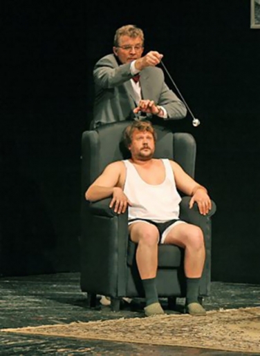 В дом семейной пары Надежды и Бориса Бызовых, по инициативе супруги, вызывается гипнотизер для решения ситуации, зашедшей в тупик: как найти спрятанные Борисом где-то у себя в квартире деньги. Видя погруженного в транс Бориса, у Надежды возникает непреодолимое желание узнать от мужа все, что так мучило ее долгие годы… Удивительно смешной, добрый и нежный спектакль расскажет вам о том, что любовь и семейное счастье – это то, ради чего следует жить. Режиссер – Валерий ГришкоКомпозитор – Михаил МокиенкоСценография и костюмы – Владимир