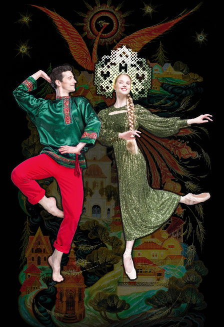 В сценическом оформлении использованы мотивы палехских росписей, предлагающих совершенно особый взгляд на сказочные и фольклорные сюжеты.