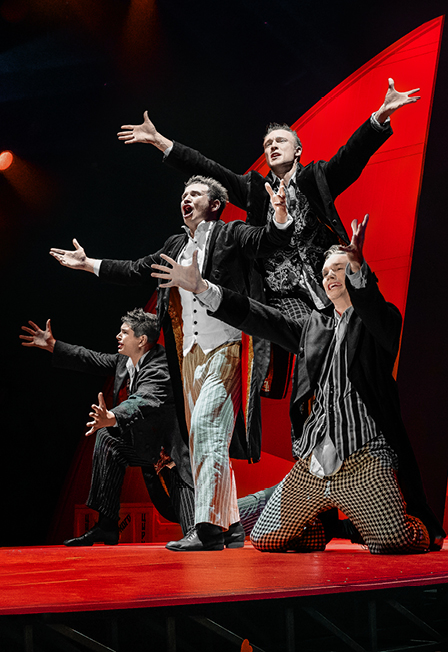 Спектакль «Смертельный номер» - пронзительная история о том, как сумасшествие превращается из приговора в таинственный ключ, открывающий двери в иные измерения бытия. Это исследование тонкой грани между реальностью и безумием. На сцене оживают четыре тени артиста, вырвавшиеся на свободу из глубин подсознания: Рыжий, Белый, Чёрный и Длинный. Каждая тень - отдельное состояние артиста. И теперь, когда они каждый сам по себе, между ними разворачивается борьба за право называться истинным наследником таланта. Жизнь артиста - постоянное балансирование на грани. Его внутренний мир - это кипящий котел противоречий, где каждая субличность обретает собственный голос, характер, мечты и страхи. Это многоголосие души, где ни одна нота не звучит в унисон с другой. «Смертельный номер» - это гимн творчеству. Он наполнен яркими и завораживающими образами, неожиданными поворотами сюжета и цирковыми номерами, которые станут метафорой внутренних состояний героев. Мы приглашаем вас в удивительное путешествие по лабиринтам сознания, где реальность переплетается с фантазией, а смех граничит со слезами! Действующие лица:Клоун – Михаил ШугарёвРыжий – Владислав МиллерЧёрный – Севастьян СмышниковБелый – Артур КасимовДлинный – Владислав НаумовУниформист – Егор Герчаков / Олег Кочетов / Егор Манаков / Гордей ЯшинПостановочная группа:Режиссёр – Народный артист РФ Владимир МашковХудожник и художник по костюмам – Александр БоровскийАссистент режиссёра – Заслуженный артист РФ Виталий Егоров и народный артист РФ Сергей УгрюмовПомощники режиссёра – Яна Знаменская и Наталия РыковскаяПостановщик иллюзионных номеров – Вадим Савенков, Михаил Цителашвили и Лерико ЦителашвилиХореограф – Заслуженный артист РФ Евгений МасалковСаунд-дизайнер – Александр ЗайцевВидеосценография – Ася МухинаМузыкальный руководитель – Алексей ЁлкинХудожник по свету – заслуженный деятель искусств РФ Дамир ИсмагиловПедагог по акробатике – Тарас МитинПремьера состоялась 7 июня 2023 годаПродолжительность: 2 часа (с