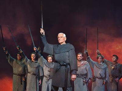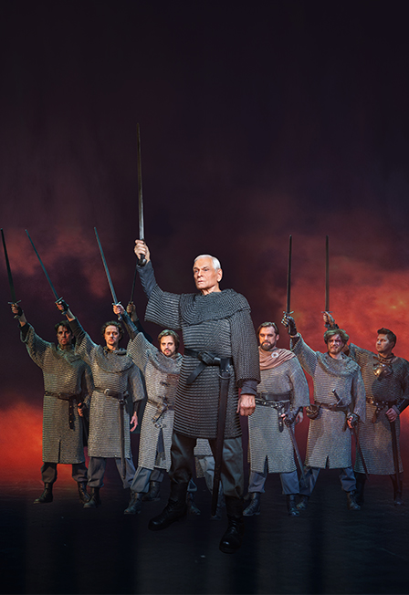 На сцене благодаря декорациям и световым эффектам возникает атмосфера начала средневековья, с его замками, колдовскими обрядами и поединками.