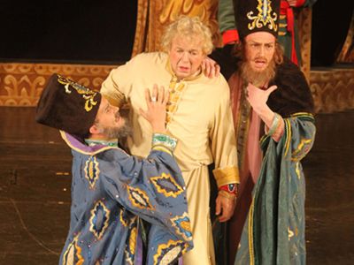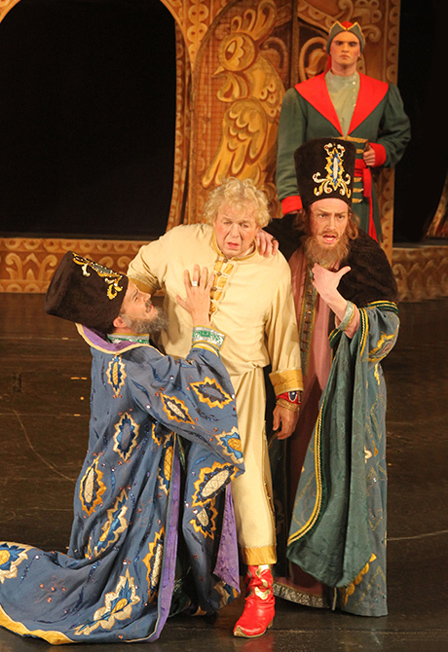 Впрочем, не только русской: создатели спектакля приготовили зрителям сюрприз, обрядив гостей Гвидона и Салтана, купцов, в одежды мексиканские и турецкие.