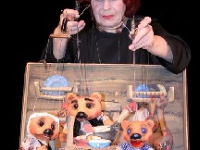 *Билеты приобретаются на каждого человека независимо от возраста. Актриса, выступающая в роли рассказчицы, повествует о маленькой девочке, заблудившейся в лесу и попавшей в избушку, где жила семья медведей. Машенька повела себя некрасиво, все раскидала, побросала, устроила беспорядок в доме мишек. История все же заканчивается благополучно, но режиссер-постановщик спектакля заостряет внимание зрителя на том, что девочка, нарушившая покой и отлаженную жизнь в медвежьем домике, в итоге чувствует за собой вину и исправляется. Спектакль-рекордсмен идет в театре более 15 лет, постоянно собирая аншлаги. В 2004 году на Всемирном фестивале театров кукол в Праге моноспектакль получил приз за лучшую сценографию. В апреле 2007 года на Международном фестивале театров кукол в г. Лодзь (Польша) актрисе Анне Сезоненко за «Три медведя» был вручен приз за лучшую женскую