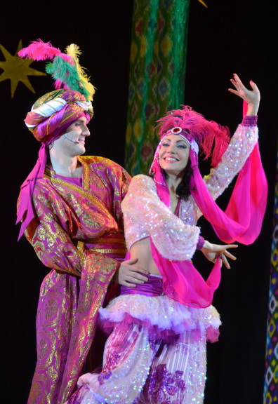 Музыкальная сказка Юрия АлябоваАвтор сценария — Вячеслав АрхиповРежиссер-постановщик — засл. артистка России Жанна ТертерянХудожник-постановщик — Игорь КапитановХудожник по костюмам — Наталья СпасскаяХореографы — Ирина Левакова, Сергей МалышевО, сколько тайн хранит ночное небо над Мединой! Романтическая история любви бедного юноши Аладдина и прекрасной царевны Будур - одна из жемчужин "Тысячи и одной ночи", сокровищницы сказок древнего Востока. Рожденному под счастливой звездой Аладдину открывается тайна Волшебной лампы, которая многие тысячи лет исполняет желания глупых и ненасытных владельцев. Небесные знамения, магические заклинания, всемогущий джинн - все приходят на помощь юноше с добрым сердцем. Команда постановщиков обратилась к арабской культуре, чтобы передать восточный колорит и философию с помощью аутентичной этнической музыки и декораций. Действующие лица и исполнители:Аладдин — Евгений ПетишДжинн Каш-Каш — Павел БадрахЦаревна Будур — Ирина ЕлисееваВизирь Джафар — Александр КольцовСултан — Александр ЮдинЗейнаб, сестра Аладдина — Анна Линдина, Наталья КоролёваМать Аладдина — Анжелика Зарьева, Юлия ФорсоваПродолжительность: 1 час 30 минут (без