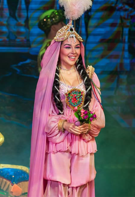 Режиссер – Руслан ЛогачёвГлавный художник – Наталья АмирджанянКомпозитор – Александр БобровХореограф – Наталья ЧерноваВолшебная сказка-иллюзия о Добрейшем Султане и прекрасной принцессе Амине, коварнейшей Королеве Змей и отважном юноше Джамиле, седобородом Звездочете и торговце сладостями Сафаре в восточном калейдоскопе древнейшей магии, сладчайшей музыки и чарующих танцев. У вас на глазах расцветет настоящее апельсиновое дерево, оживет золотая фигура слона, из воздуха появятся чудесные цветы и многое-многое другое. . . И, быть может, именно сегодня говорящая Голова откроет тайну древнего Талисмана - Талисмана Принцессы. Действующие лица:Султан – Артем ЕрмакДжамиль – Андрей ВедякинАмина – Надежда Гусакова / Полина КозловаСафар – Игорь ТюнинКоролева змей – Полина Козлова / Марина ЕрмакДжин — Михаил КоховЗвездочет – Олег ВасильчукКовер-самолет – Анастасия Иванчук / Надежда ГусаковаМудрый шар – Татьяна ИвченкоЖенихи — Вячеслав Чернов, Олег Владимиров, Микаель Гаспарян/Николай Назаренко, Михаил ЯрвеловСлуги султана – Вячеслав Чернов, Олег Владимиров, Николай Назаренко, Михаил Ярвелов, Микаель ГаспарянСлуги змей – Анжела Цихиева, Екатерина Бурлака, Дарья Кутырина, Анна СычОдалиски – Анжела Цихиева, Екатерина Бурлака, Дарья Кутырина/Дария Гаврилова, Анастасия Иванчук, Анна СычПродолжительность: 1 час 15