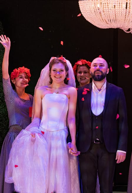 П. БомаршеКомедия в двух действияхРежиссёр-постановщик — Гульнара ГалавинскаяХудожник-постановщик – Андрей ЩаевХудожник по свету – Константин РожковХореограф – Сергей ЗахаринОбаятельный плут и интриган Фигаро терпит крушение во всех своих общественных и творческих начинаниях, однако не падает духом и продолжает бороться за свои права на любовь и счастливую жизнь. Именно из-за любви на его долю выпадает «безумный день», в течение которого ему предстоит жениться, распутать свои же интриги, испытать мнимую измену молодой жены, оказаться перед лицом правосудия и встретиться с родителями, которых не знал с младенчества. Красивые декорации и яркие костюмы, очаровательные герои, придворные интриги и непременно счастливый финал под зажигательные песни Адриано Челентано — все это делает из классической комедии положений настоящий праздник на сцене Театра Иллюзии! Действующие лица и исполнители:Фигаро – Владимир ВитанСюзанна – Юлия Малинина / Лариса КапустинаГраф Альмавива – Олег ЖуковГрафиня – Тамара КарантКерубино – Александр Поваляев / Олег Тарасов Марселина – з. а. РФ Галина ЧигасоваБартоло – Павел РемневАнтонио – з. а. РФ Николай МальцевБазиль – Антон ЗаруднийФаншетта – Наталья ВасинаДубльмен – Павел ВасильковГрипсолейл – Павел ВасильковДон Бридуазон – з. а. РФ Константин НикифоровПридворные графа – Наталья Васина, Любовь Васина, Артем Леонов, Павел Васильков, Мария Монич, Мария Филиппович, Егор Соловьев, Валентина КолеваИллюзионист-фокусник – Андрей ТкачукСудебный пристав – Артем ЛеоновПродолжительность: 2 часа 30