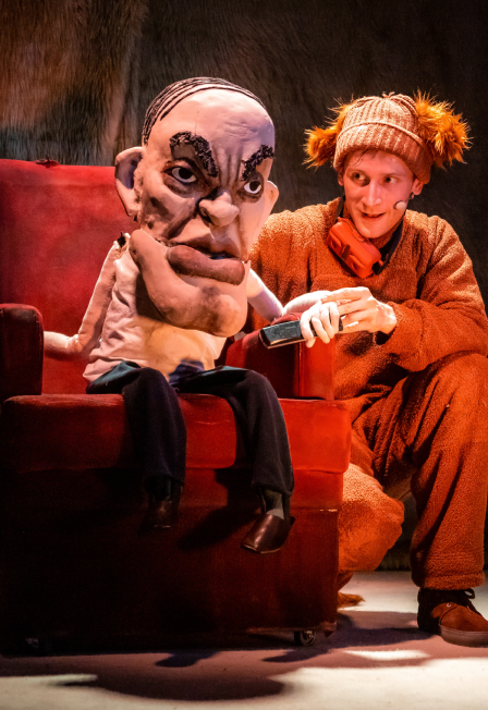 Спектакль решен в мультяшном, экспрессивном и насквозь ироничном стиле.