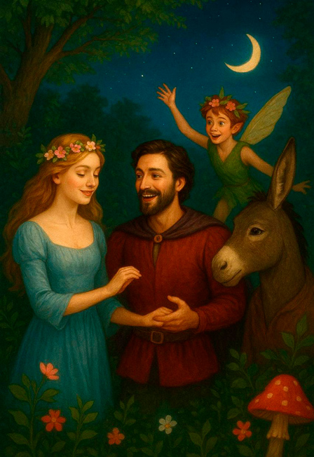 Добавьте к этому свадьбу главного Дон Жуана Древней Греции – Тезея с царицей Амазонок Ипполитой; влюбленных, сбежавших от древних (даже для Древней Греции), патриархальных законов, не дающих им быть вместе; а также маленькую труппу актеров, разыгрывающих пародию на античных Ромео и Джульетту… Приправьте все это проказами и проделками шаловливого эльфа Пэка на фоне оживших героев мифов и легенд… И вы поймете, что ночь (как и спектакль) обещает быть бурной, необычной и романтичной.