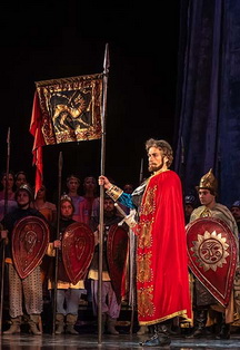 А. П. БОРОДИНопера в 3-х действиях с прологомЛибретто А. Бородина по «Слову о полку Игореве»Премьера 1 сентября, постановка 1996 года (пятая: 1935, 1951, 1958, 1975)Дирижёр-постановщик — народный артист Бурятии, лауреат Государственной премии Владимир РыловРежиссёр-постановщик — заслуженный деятель искусств Белоруссии, заслуженный артист РФ Отар ДадишкилианиХормейстер — заслуженный деятель искусств РФ Эдуард Пастухов«Половецкие пляски» — хореография и постановка Заслуженного артиста РФ Леонида СычёваДекорации и костюмы по эскизам народного художника СССР, академика Ф. Федоровского выполнили художники А. Крутов, Е. Фролов и художники по костюмам А. Шаманина и О. ЛавроваИсточником для либретто, написанного самим автором при участии В. В. Стасова, послужил памятник древнерусской литературы «Слово о полку Игореве», рассказывающий о походе князя Игоря против половцев. Удачный поход (1184) южнорусских князей на половцев побудил Игоря Святославича, вместе с братом его Всеволодом, предпринять в следующем году новый поход. Вместе с дружиной они двинулись к берегам Дона и Сала. Первая встреча с половцами окончилась победой русских, но на берегах Каяла (Кагальник) Игорь был окружен нахлынувшими со всех сторон ордами половцев. Большая часть воинов легла на поле битвы, а князья с остатками дружин взяты в плен. Из плена Игорь бежал, оставив там своего сына Владимира. Действие оперы происходит в Путивле и в половецком стане в 1185 году. Храбрый, но недальновидный Игорь идёт в поход на половцев, несмотря на то, что внезапное затмение солнца предвещает ему поражение. Остаётся глух он и к мольбам своей жены – Ярославны, предчувствующей беду. Желание личной славы «заступает ему знамение»…Немногие из пришедших с Руси к реке Каяле сумели уйти со страшного поля. Тяжело переживая плен и позор поражения, Игорь жаждет свободы. Мысли о несчастьях отчизны терзают его…Рекомендуемый возраст — с 12-ти летПродолжительность спектакля 3 часа 20 минут с двумя