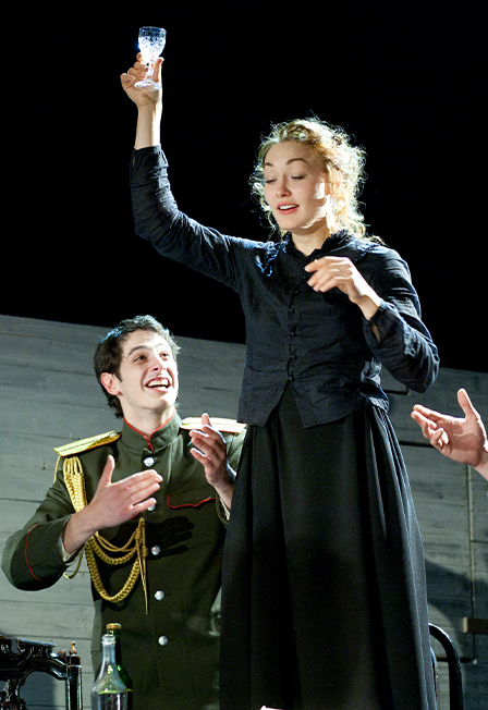 Михаил Булгаков. Драма в двух действияхПостановка - Григорий КозловВ спектакле заняты учащиеся Санкт-Петербургского кадетского корпуса. Действие происходит в Киеве зимой 1918-1919 годов. Разрушительной стихии эпохи противопоставлен гармоничный, уютный мир семьи Турбиных с кремовыми шторами, камином и роялем. Здесь царят любовь и влюбленность, дружба и взаимопонимание, музыка и веселье. Дом Турбиных, где «часы играли гавот, и всегда в конце декабря пахло хвоей, и разноцветный парафин горел на зелёных ветвях» – тихая гавань, островок культуры, духовности и человечности в бушующей стихии озлобленности и бессмысленности. Возможно ли сохранить этот мир, когда частная жизнь человека вступает в непримиримый конфликт со Временем. . ? Взорван привычный уклад жизни, в городе - хаос и неразбериха, «чертова комедия» гетманщины сменяется «черным туманом» петлюровщины. Спектакль построен на крупных планах, словно бы на страшную картину рушащегося мира мы смотрим через призму одного дома, одной семьи. И хотя вокруг дома – война, хотя отзвуки её – кругом, эта история – не о войне. «Дни Турбиных» – о сохранении себя, своей веры, своей любви. Продолжительность: 3,5 часа с