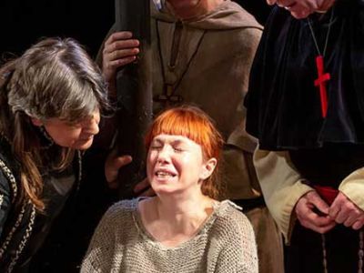 Философская притчаЖан АнуйПеревод с французского Надежды ЖарковойПремьера — 17 февраля 2001 годаДрама, в трёх актахРежиссёр-постановщик — народный артист России, лауреат премии Правительства России Семён СпивакРежиссёр — Андрей Дежонов, режиссёр-ассистент — Мария МирошХудожник-постановщик — Эмиль КапелюшХудожник по костюмам — Елена ЗайцеваХудожники по свету — заслуженный работник культуры России Евгений Ганзбург, Сергей АндрияшинХореограф-постановщик — заслуженный деятель искусств России, лауреат Государственной премии России Сергей ГрицайБалетмейстер-репетитор — Надежда РязанцеваМузыкальное оформление — заслуженный артист России, заслуженный работник культуры России Иван БлагодёрДействующие лица и исполнители:Граф Варвик Роман НечаевКошон Андрей ШимкоАрхиепископ Народный артист России Валерий Кухарешин/Сергей ЯценюкЖанна Регина ЩукинаКарл Заслуженный артист России Сергей БарковскийБодрикур; Палач Евгений Клубов/Сергей МалаховЛаир Вадим ВолковЛатремуй Геннадий КосаревОтец Александр ЧеркашинМать Заслуженная артистка России Елена Соловьёва/Екатерина МорачевскаяБрат Андрей ЗарубинКоролева Иоланта Заслуженная артистка России Наталия Дмитриева/Заслуженная артистка России Екатерина ДроноваМолодая королева Надежда РязанцеваАгнесса Александра БражниковаПьесу известного французского драматурга Жана Ануя представил художественный руководитель театра на Фонтанке, а в прошлом главный режиссер Московского государственного театра им. К. С. Станиславского Семен Спивак. Пьеса-диспут начала 1950-х о Жанне д'Арк превратилась в этом спектакле в размышления о человеческом и личностном призвании каждого из нас. В данном сценическом варианте весь игровой материал обретает современный философский подтекст. Однако все преподносится зрителю без тяжелого фанатизма, без штампов и клише. История о юной пастушке, которая была ведома божественными голосами по пути освобождения Франции, преподнесена с изрядной долей иронии, отрезвляющей трагедию фарсом. Перед зрителями вновь предстает история девочки из Домреми, которая за свою готовность пожертвовать жизнью ради Иисуса и независимости её родной Франции была казнена по приказу Ватикана. В новой трактовке Спивака эта трагедия обретает поистине вселенские масштабы. "Жаворонок" – это аллегория или своеобразное альтер-эго героини. Пусть она была одинока, но сумела сохранить себя в хаосе бытия, что, согласитесь, и в наше время бывает не часто. Это так же и гимн искусству, творческому началу в человеке. «Жаворонок» - это философская притча о творце - одиноком изгое, создающем свой странный и непостижимый мир. Продолжительность: 3 часа 40 минут. Спектакль идет с двумя